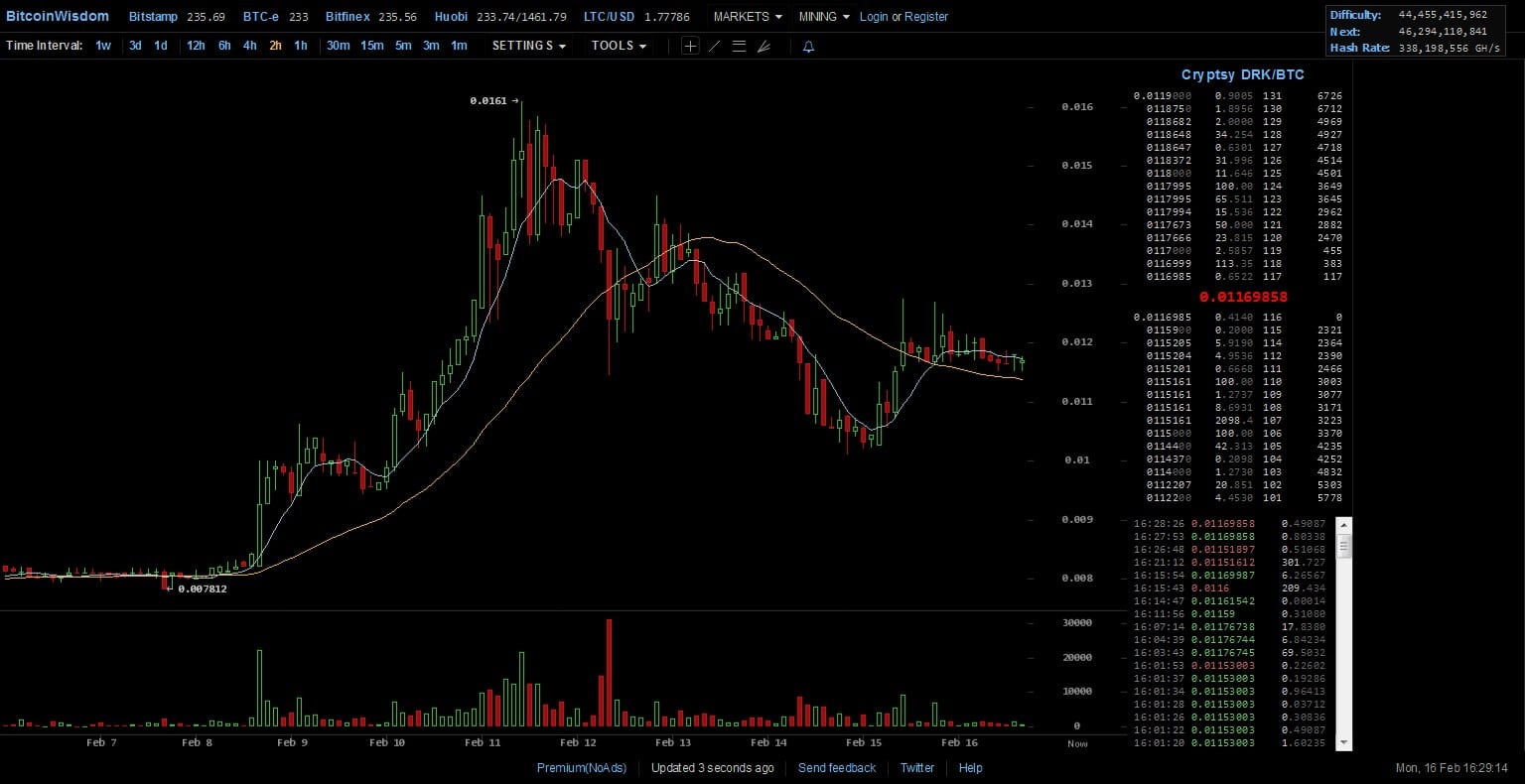 Upon release of the new InstantX about a week ago, Darkcoin’s market price almost doubled to over .015 BTC. Since then, it has pulled back and settles around .00117 BTC. This author already has a token amount purchased since its launch but am looking to add more – do you think it’s a good time to add to the portfolio?